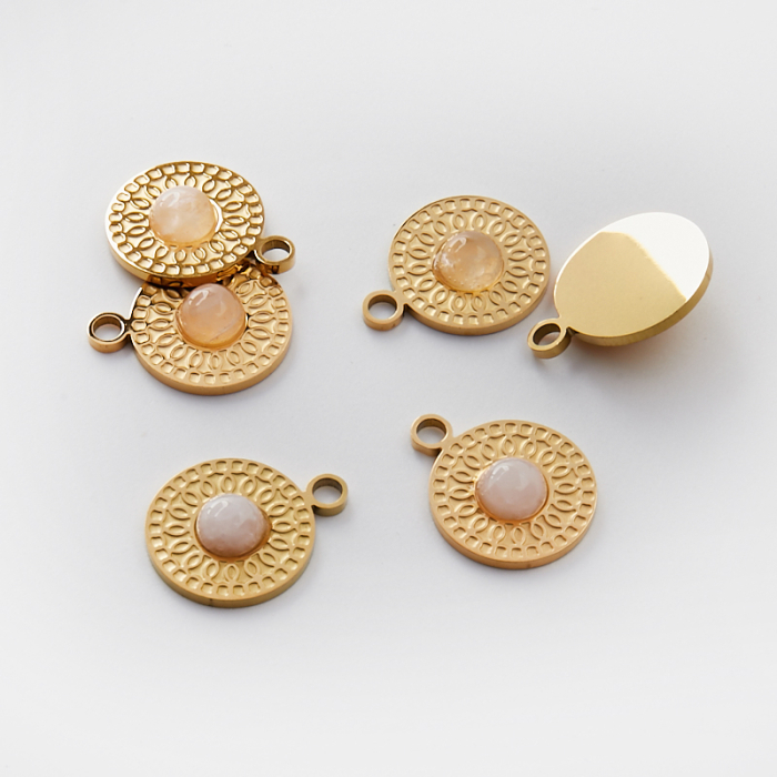 Zawieszka ze stali chirurgicznej kółko z kryształem górskim różowym w kolorze złotym 19mm PVDTo estetyczny element biżuteryjny ze stali chirurgicznej 316L, chętnie wybierany do nowoczesnych projektów. Stal chirurgiczna 316L jest ceniona za odporność na korozję i estetyczny wygląd w codziennym użytkowaniu. Wykończenie w kolorze złotym uzyskane metodą PVD.Zawieszka ze stali chirurgicznej 316L to dekoracyjny element, który nadaje biżuterii charakteru i pozwala tworzyć spersonalizowane projekty. Świetnie sprawdza się w naszyjnikach, bransoletkach, kolczykach oraz drobnych charmsach.Forma lub motyw
