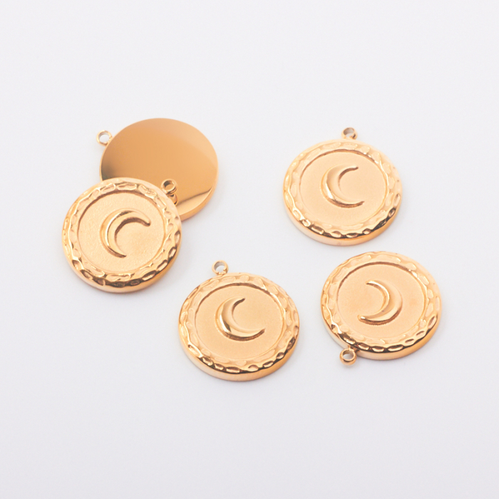 Zawieszka ze stali chirurgicznej kółko z księżycem w kolorze złotym 14mmTo estetyczny element biżuteryjny ze stali chirurgicznej 316L, chętnie wybierany do nowoczesnych projektów. W biżuterii handmade stal chirurgiczna 316L jest ceniona za dobry wygląd, odporność na korozję i wygodę codziennego użytkowania.Zawieszka ze stali chirurgicznej 316L to dekoracyjny element, który nadaje biżuterii charakteru i pozwala tworzyć spersonalizowane projekty. Świetnie sprawdza się w naszyjnikach, bransoletkach, kolczykach oraz drobnych charmsach.Forma lub motyw