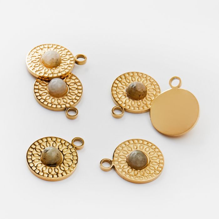 Zawieszka ze stali chirurgicznej kółko z labradorytem w kolorze złotym 19mm PVD