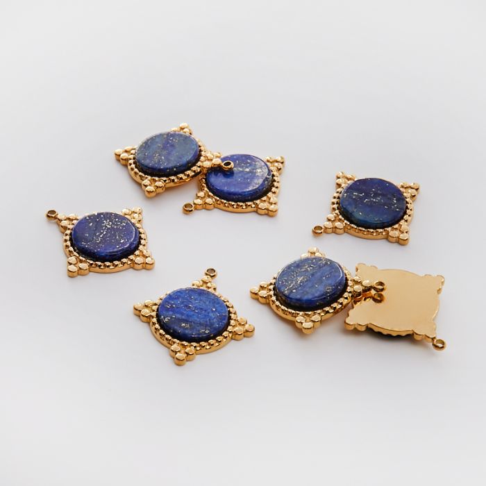 Zawieszka ze stali chirurgicznej kółko z lapis lazuli w kolorze złotym 25mm PVD