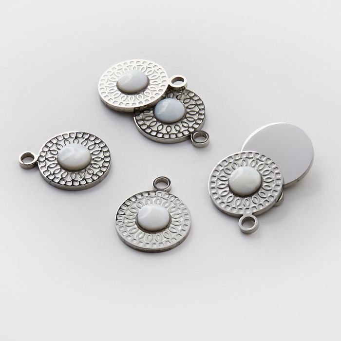 Zawieszka ze stali chirurgicznej kółko z masą perłową w kolorze srebrnym 19mm