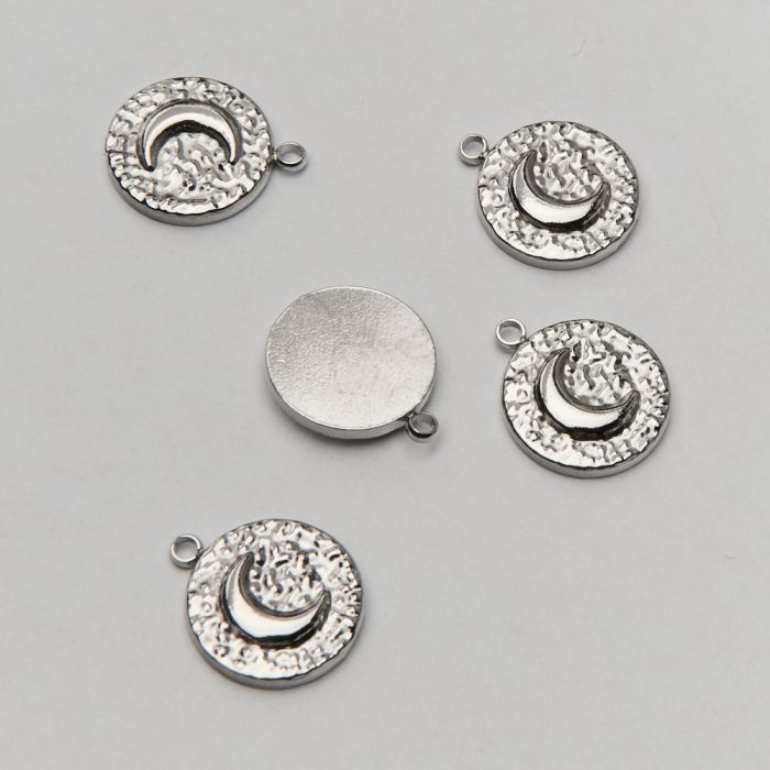 Zawieszka ze stali chirurgicznej kółko z motywem księżyca w kolorze srebrnym 12,5mm