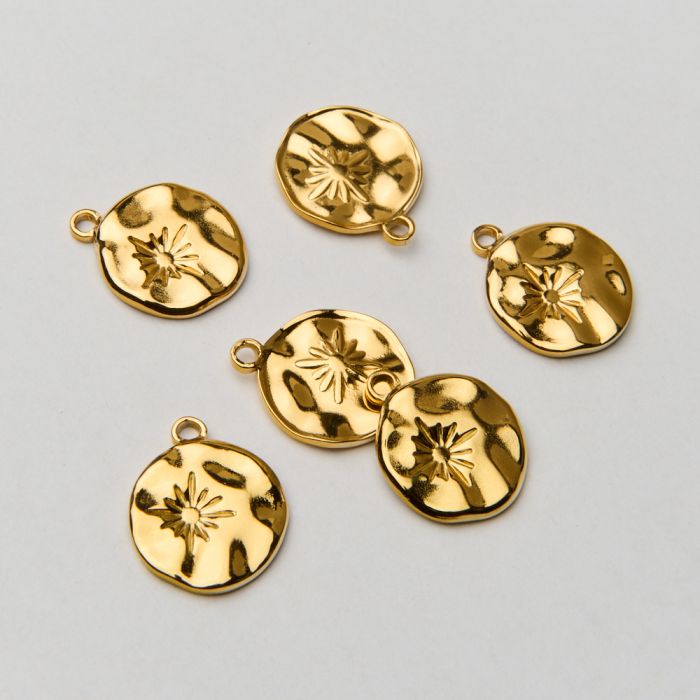 Zawieszka ze stali chirurgicznej kółko z motywem słońca na horyzoncie w kolorze złotym 15mm PVD