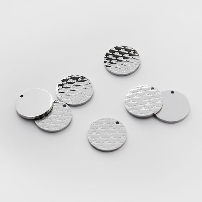 Zawieszka ze stali chirurgicznej kółko z napisem love w kolorze srebrnym 15mm