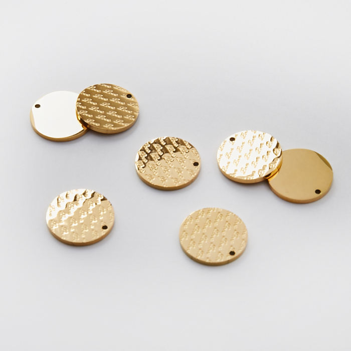 Zawieszka ze stali chirurgicznej kółko z napisem love w kolorze złotym 15mm PVD