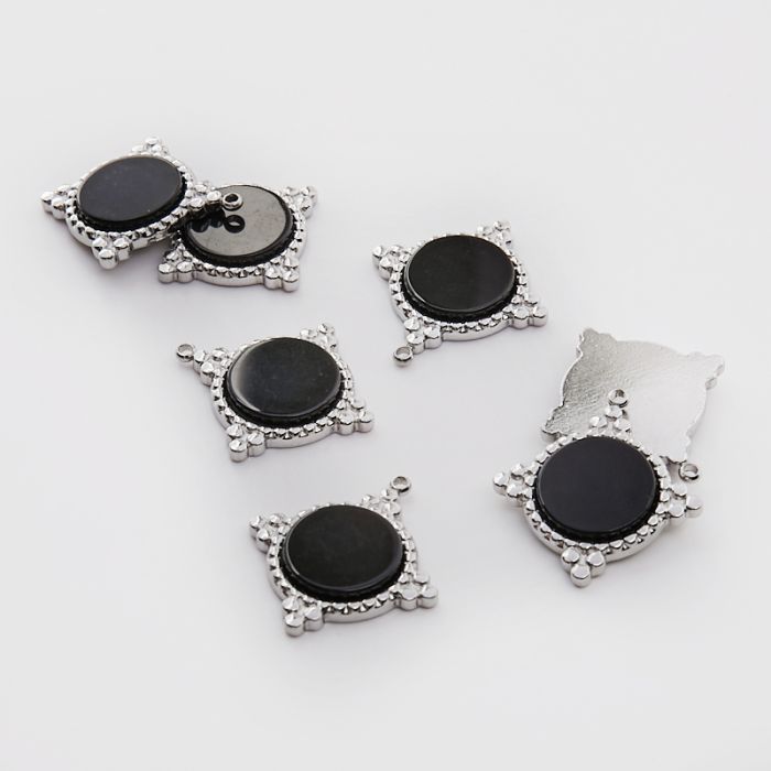 Zawieszka ze stali chirurgicznej kółko z onyksem w kolorze srebrnym 25mm