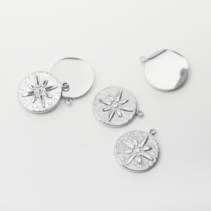 Zawieszka ze stali chirurgicznej kółko z różą wiatrów 12,5mmTo estetyczny element biżuteryjny ze stali szlachetnej, chętnie wybierany do nowoczesnych projektów. Stal szlachetna dobrze sprawdza się w biżuterii noszonej na co dzień, ponieważ łączy trwałość z estetycznym wykończeniem.Zawieszka ze stali szlachetnej to dekoracyjny element, który nadaje biżuterii charakteru i pozwala tworzyć spersonalizowane projekty. Świetnie sprawdza się w naszyjnikach, bransoletkach, kolczykach oraz drobnych charmsach.Forma lub motyw