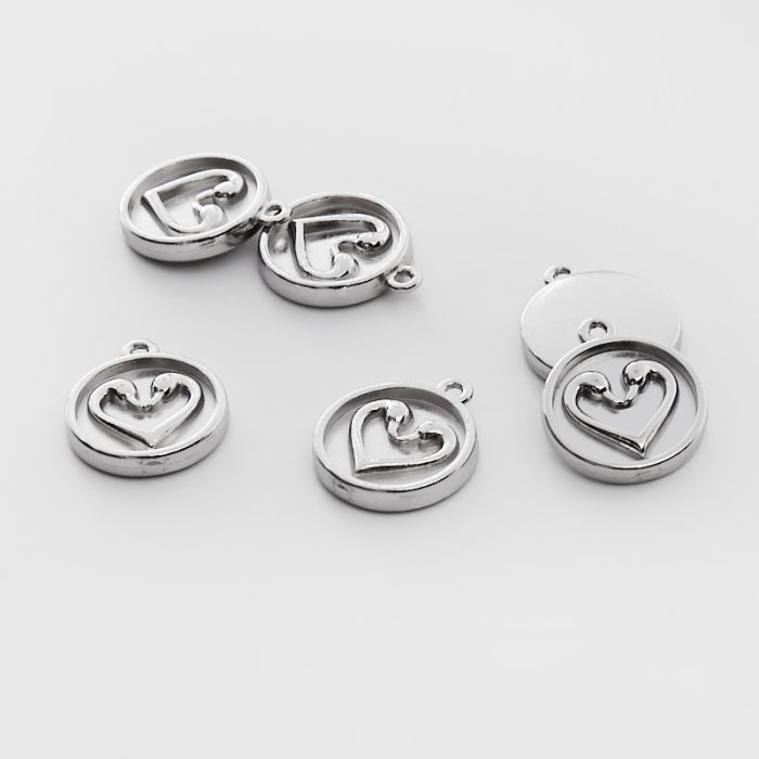Zawieszka ze stali chirurgicznej kółko z serduszkiem w kolorze srebrnym 17mm