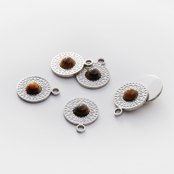 Zawieszka ze stali chirurgicznej kółko z tygrysim okiem w kolorze srebrnym 19mmTo trwały element biżuterii lub półfabrykat jubilerski, który dobrze sprawdza się w codziennych realizacjach. To materiał chętnie wybierany do biżuterii handmade ze względu na trwałość, estetykę i wygodę użytkowania.Zawieszka ze stali chirurgicznej 316L to dekoracyjny element, który nadaje biżuterii charakteru i pozwala tworzyć spersonalizowane projekty. Świetnie sprawdza się w naszyjnikach, bransoletkach, kolczykach oraz drobnych charmsach.Forma lub motyw