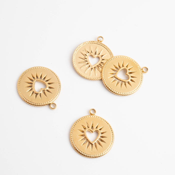 Zawieszka ze stali chirurgicznej kółko z wyciętym sercem w kolorze złotym 15mm PVD