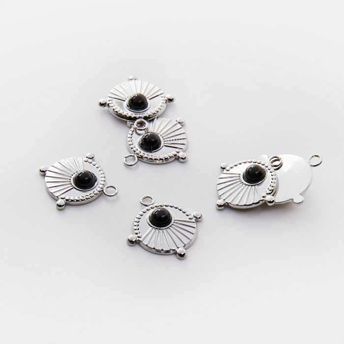 Zawieszka ze stali chirurgicznej kółko z wypustkami onyksem w kolorze srebrnym 17,5mm