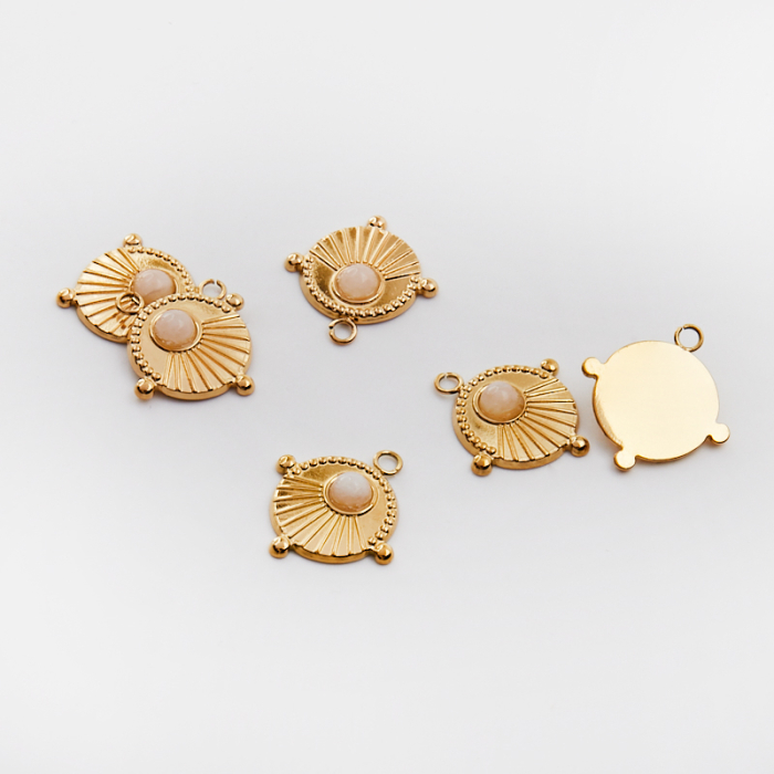 Zawieszka ze stali chirurgicznej kółko z wypustkami z kamieniem księżycowym w kolorze złotym 17,5mm PVD
