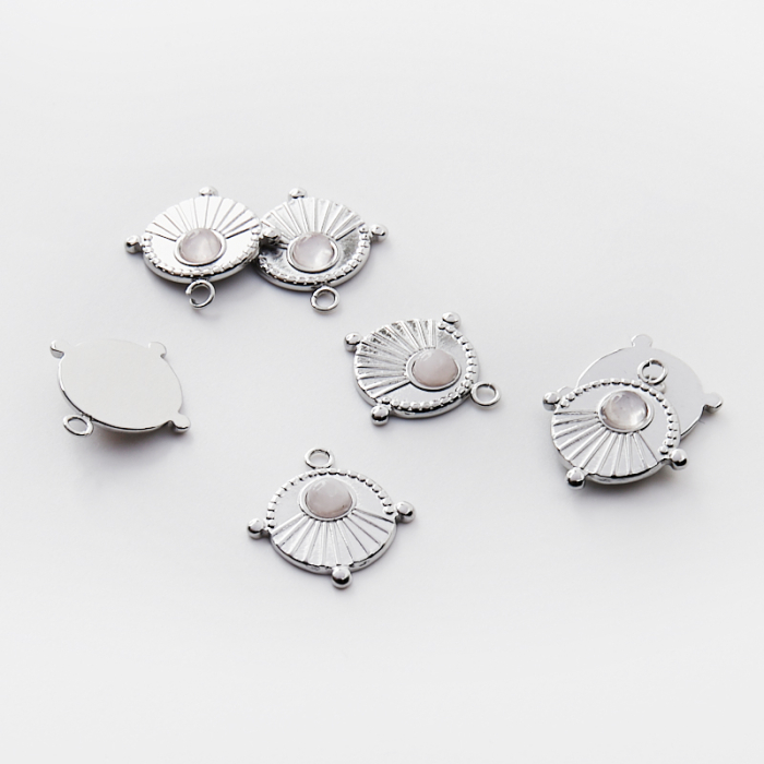 Zawieszka ze stali chirurgicznej kółko z wypustkami z różowym kryształem górskim w kolorze srebrnym 17,5mm