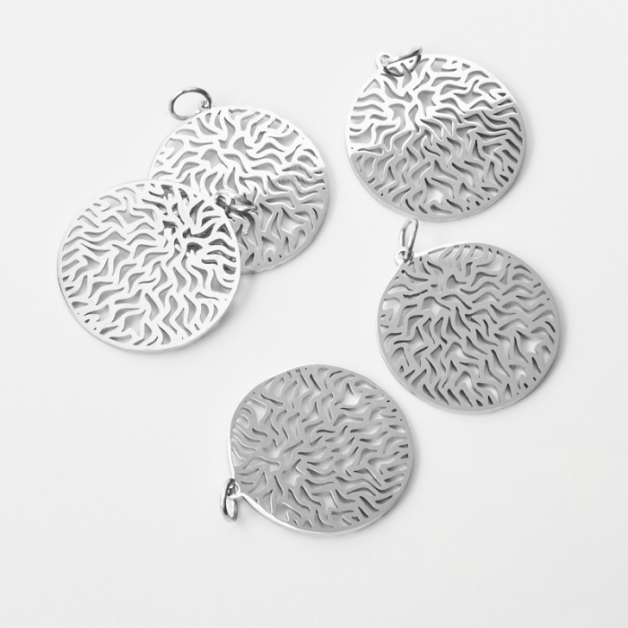 Zawieszka ze stali chirurgicznej koło ze wzorkami do naszyjników w kolorze srebrnym 22mmTo trwały element biżuterii lub półfabrykat jubilerski, który dobrze sprawdza się w codziennych realizacjach. Stal chirurgiczna 316L jest ceniona za odporność na korozję i estetyczny wygląd w codziennym użytkowaniu.Naszyjnik ze stali chirurgicznej 316L to gotowy element biżuterii lub baza do dalszego personalizowania, w zależności od konstrukcji produktu. Dobrze sprawdza się w codziennym noszeniu i pozwala łatwo dopasować styl projektu do pozostałych dodatków.Rozmiar