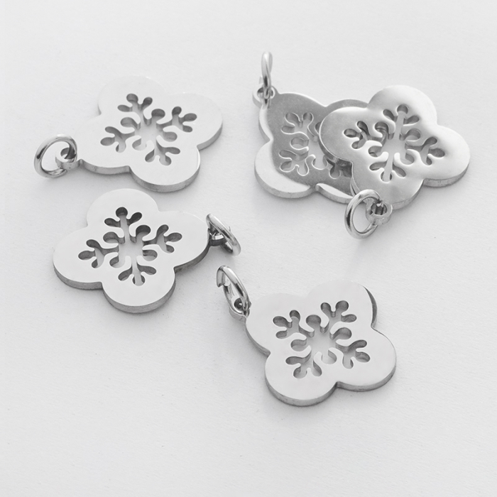 Zawieszka ze stali chirurgicznej koniczyna marokańska do naszyjników w kolorze srebrnym 18,5mmTo starannie wykonany produkt ze stali chirurgicznej 316L, który dobrze prezentuje się w codziennym użytkowaniu. W biżuterii handmade stal chirurgiczna 316L jest ceniona za dobry wygląd, odporność na korozję i wygodę codziennego użytkowania.Naszyjnik ze stali chirurgicznej 316L to gotowy element biżuterii lub baza do dalszego personalizowania, w zależności od konstrukcji produktu. Dobrze sprawdza się w codziennym noszeniu i pozwala łatwo dopasować styl projektu do pozostałych dodatków.Rozmiar