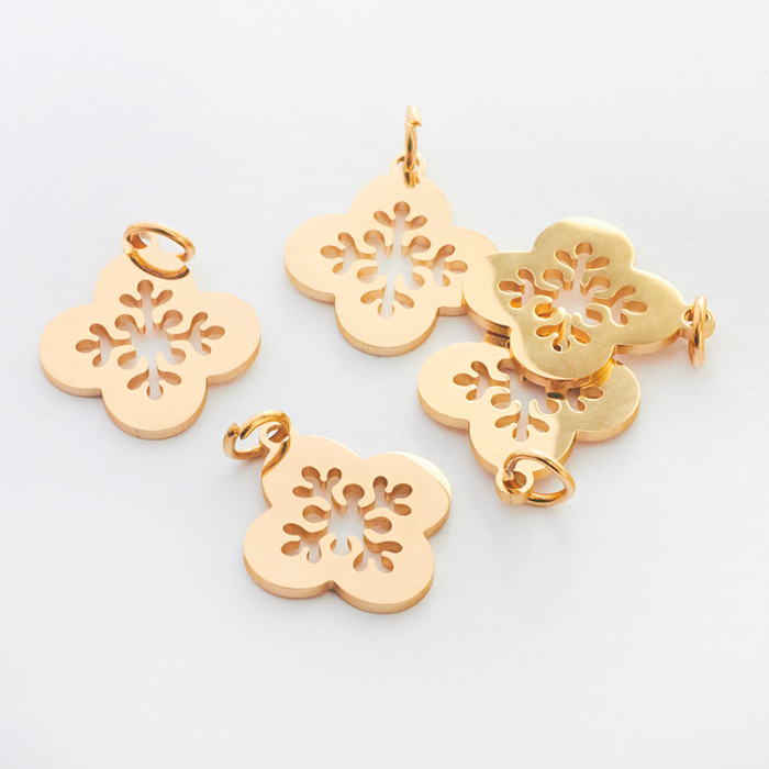 Zawieszka ze stali chirurgicznej koniczyna marokańska do naszyjników w kolorze złotym 19mmTo dopracowany produkt ze stali chirurgicznej 316L, który łączy praktyczność z estetycznym wyglądem. Stal chirurgiczna 316L dobrze sprawdza się w biżuterii noszonej na co dzień, ponieważ łączy trwałość z estetycznym wykończeniem.Naszyjnik ze stali chirurgicznej 316L to gotowy element biżuterii lub baza do dalszego personalizowania, w zależności od konstrukcji produktu. Dobrze sprawdza się w codziennym noszeniu i pozwala łatwo dopasować styl projektu do pozostałych dodatków.Rozmiar
