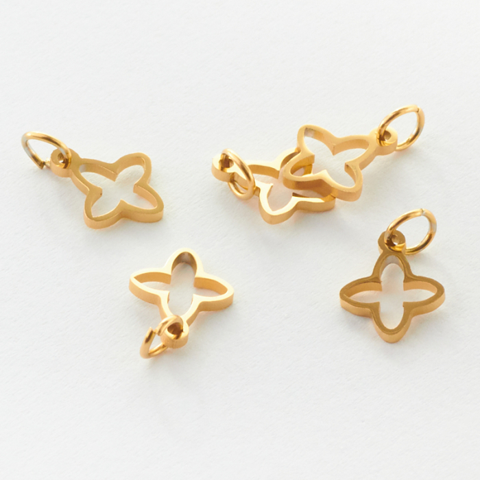 Zawieszka ze stali chirurgicznej koniczyna marokańska w kolorze złotym 13mmTo dopracowany produkt ze stali szlachetnej, który łączy praktyczność z estetycznym wyglądem. Stal szlachetna jest ceniona za odporność na korozję i estetyczny wygląd w codziennym użytkowaniu.Zawieszka ze stali szlachetnej to dekoracyjny element, który nadaje biżuterii charakteru i pozwala tworzyć spersonalizowane projekty. Świetnie sprawdza się w naszyjnikach, bransoletkach, kolczykach oraz drobnych charmsach.Forma lub motyw
