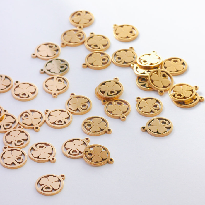 Zawieszka ze stali chirurgicznej koniczynka w kółku w kolorze złotym 12,5mm