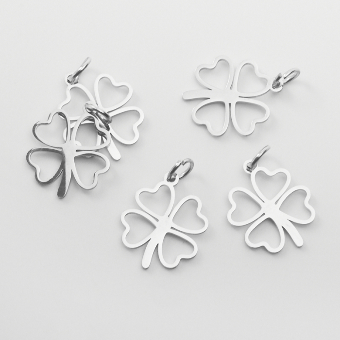 Zawieszka ze stali chirurgicznej koniczynka w kolorze srebrnym 21mm