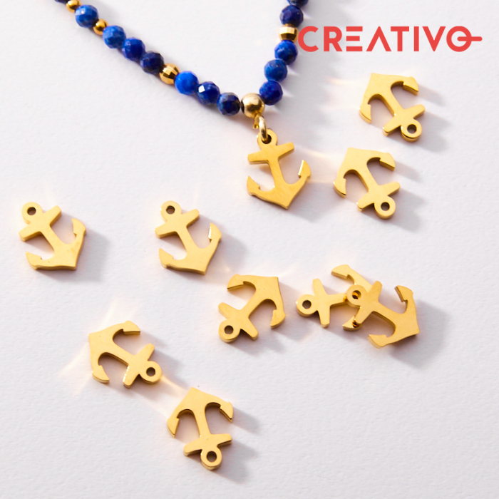 Zawieszka ze stali chirurgicznej kotwica w kolorze złotym 11mmTo estetyczny element biżuteryjny ze stali chirurgicznej 316L, chętnie wybierany do nowoczesnych projektów. Stal chirurgiczna 316L jest ceniona za odporność na korozję i estetyczny wygląd w codziennym użytkowaniu.Zawieszka ze stali chirurgicznej 316L to dekoracyjny element, który nadaje biżuterii charakteru i pozwala tworzyć spersonalizowane projekty. Świetnie sprawdza się w naszyjnikach, bransoletkach, kolczykach oraz drobnych charmsach.Forma lub motyw