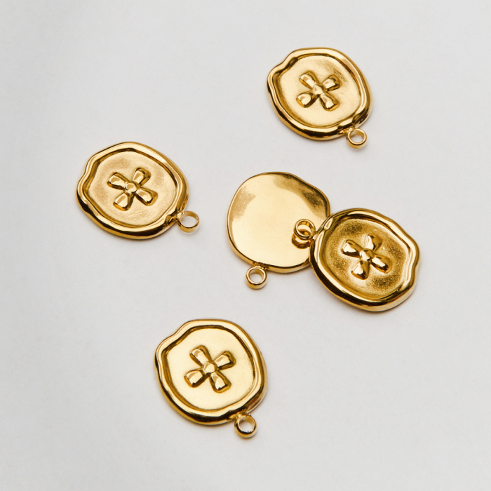 Zawieszka ze stali chirurgicznej krzyż maltański w kolorze złotym 14,5mm PVD