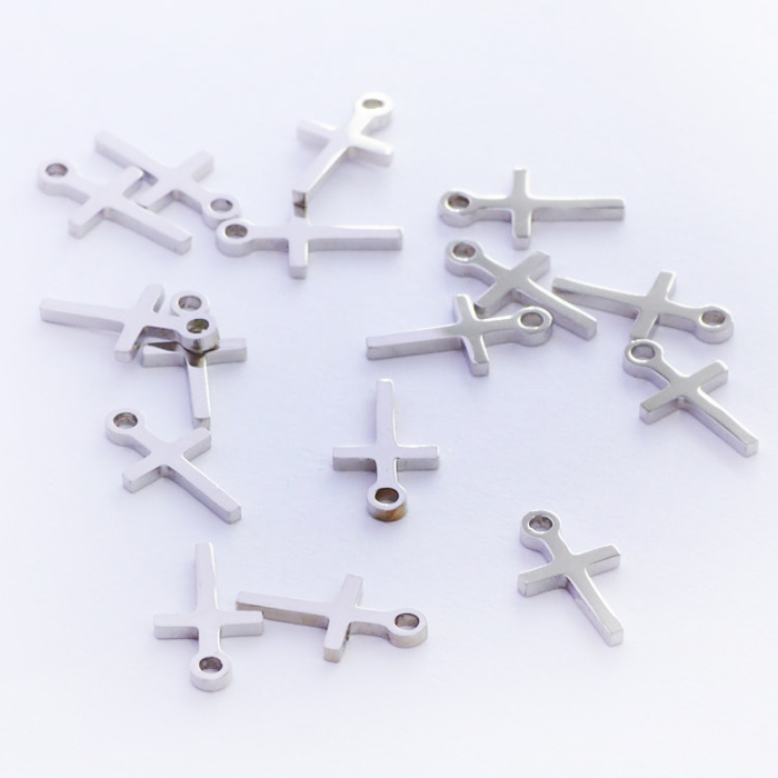Zawieszka ze stali chirurgicznej krzyż prosty w kolorze srebrnym 12,5mm