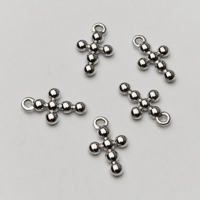 Zawieszka ze stali chirurgicznej krzyż z kulek w kolorze srebrnym 20mm