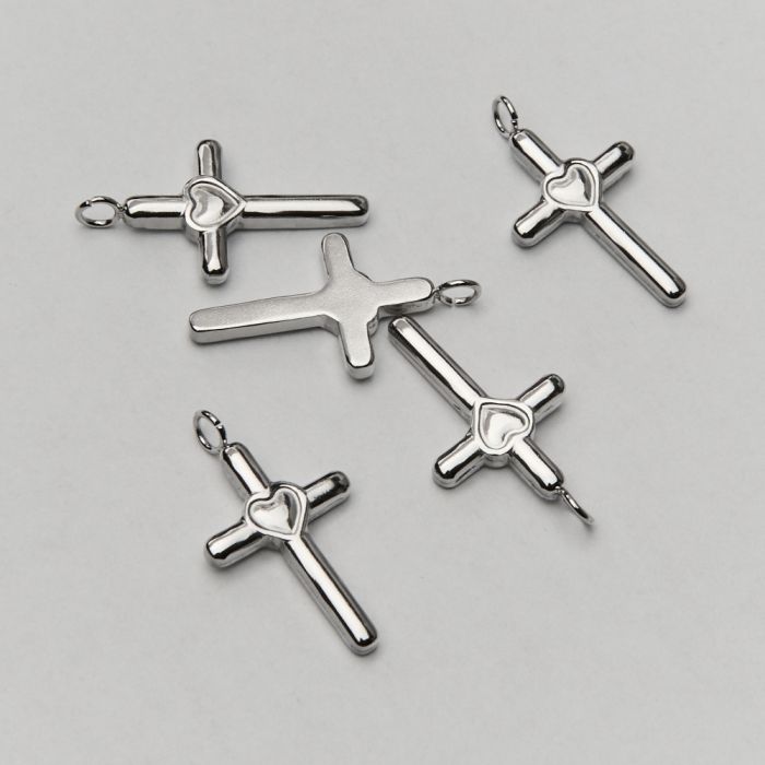 Zawieszka ze stali chirurgicznej krzyż z sercem w kolorze srebrnym 22mm