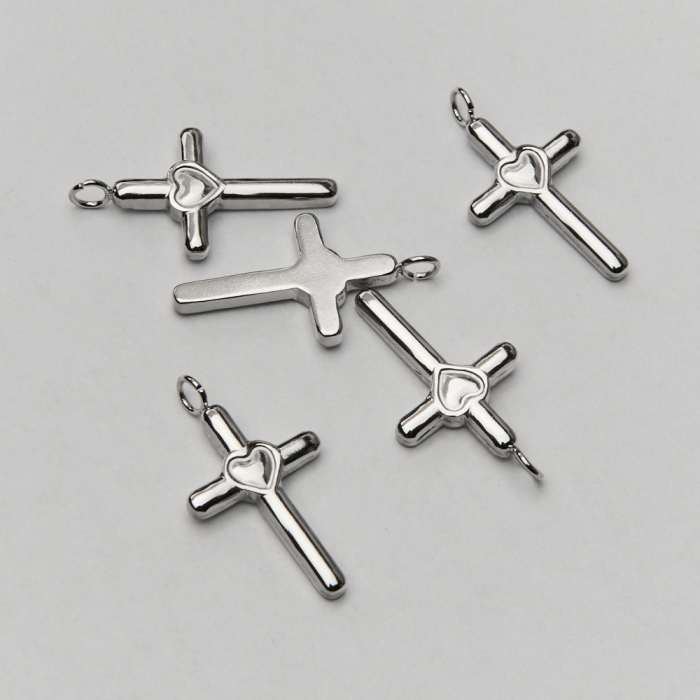 Zawieszka ze stali chirurgicznej krzyż z sercem w kolorze srebrnym 22mmTo starannie wykonany produkt ze stali chirurgicznej 316L, który dobrze prezentuje się w codziennym użytkowaniu. To materiał chętnie wybierany do biżuterii handmade ze względu na trwałość, estetykę i wygodę użytkowania.Zawieszka ze stali chirurgicznej 316L to dekoracyjny element, który nadaje biżuterii charakteru i pozwala tworzyć spersonalizowane projekty. Świetnie sprawdza się w naszyjnikach, bransoletkach, kolczykach oraz drobnych charmsach.Forma lub motyw
