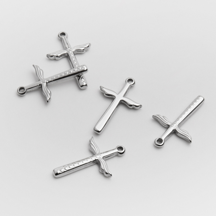 Zawieszka ze stali chirurgicznej krzyżyk w kolorze srebrnym 19mmTo dopracowany produkt ze stali chirurgicznej 316L, który łączy praktyczność z estetycznym wyglądem. Stal chirurgiczna 316L jest ceniona za odporność na korozję i estetyczny wygląd w codziennym użytkowaniu.Zawieszka ze stali chirurgicznej 316L to dekoracyjny element, który nadaje biżuterii charakteru i pozwala tworzyć spersonalizowane projekty. Świetnie sprawdza się w naszyjnikach, bransoletkach, kolczykach oraz drobnych charmsach.Forma lub motyw
