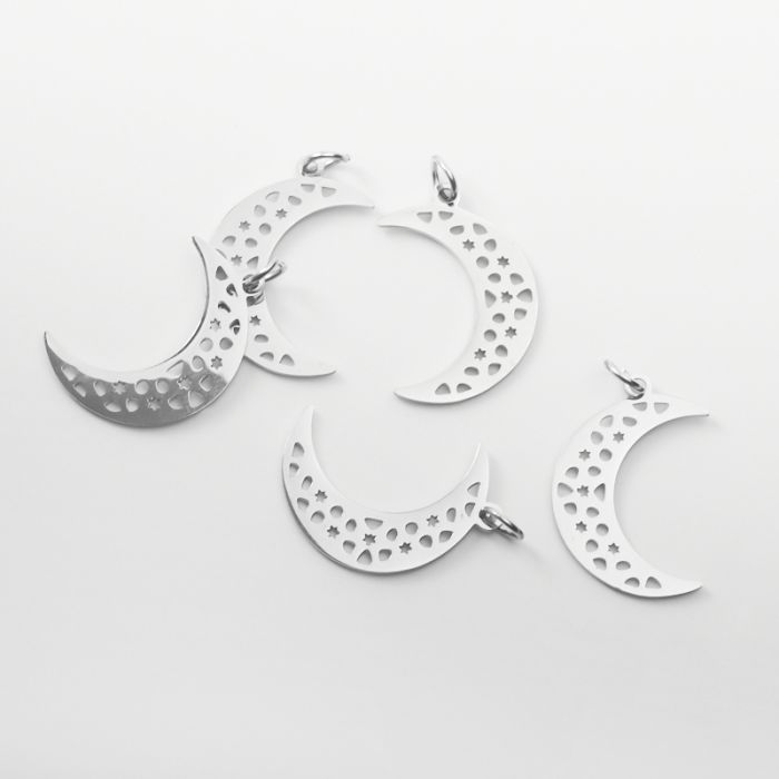 Zawieszka ze stali chirurgicznej księżyc ażurowy w kolorze srebrnym 22mm