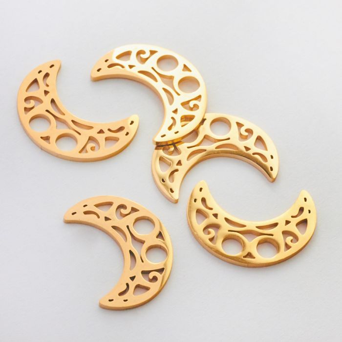 Zawieszka ze stali chirurgicznej księżyc ażurowy w kolorze złotym 10mm