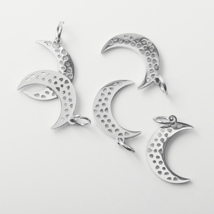 Zawieszka ze stali chirurgicznej księżyc w kolorze srebrnym 14mm