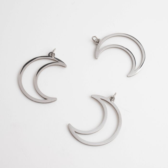Zawieszka ze stali chirurgicznej księżyc wycięty w kolorze srebrnym 24mm
