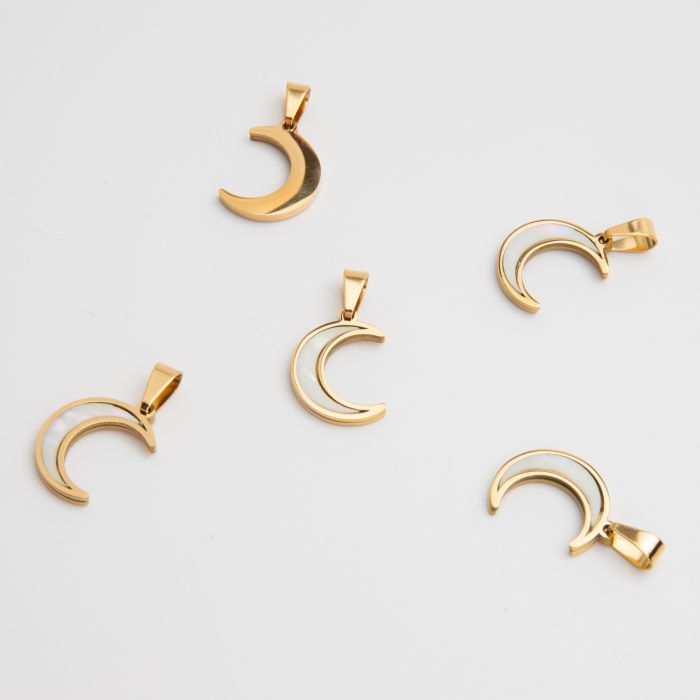 Zawieszka ze stali chirurgicznej księżyc z masą perłową w kolorze złotym 18mm PVD