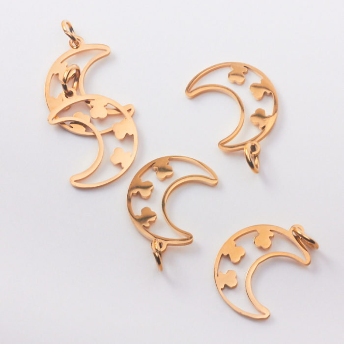 Zawieszka ze stali chirurgicznej księżyc z miśkami w kolorze złotym 14mm