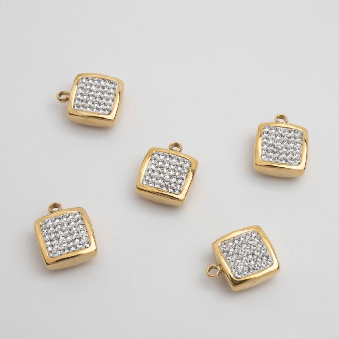 Zawieszka ze stali chirurgicznej kwadrat wysadzany cyrkoniami w kolorze złotym 12mm PVD