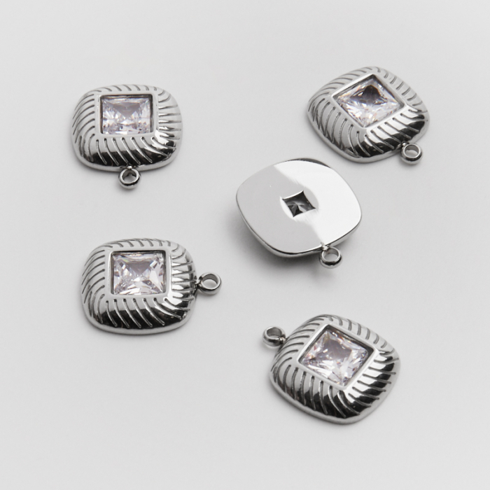 Zawieszka ze stali chirurgicznej kwadrat z dużą białą cyrkonią w kolorze srebrnym 14,5mm