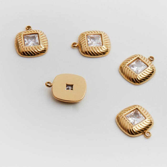 Zawieszka ze stali chirurgicznej kwadrat z dużą białą cyrkonią w kolorze złotym 14,5mm PVD