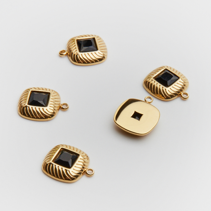 Zawieszka ze stali chirurgicznej kwadrat z dużą czarną cyrkonią w kolorze złotym 14,5mm PVD
