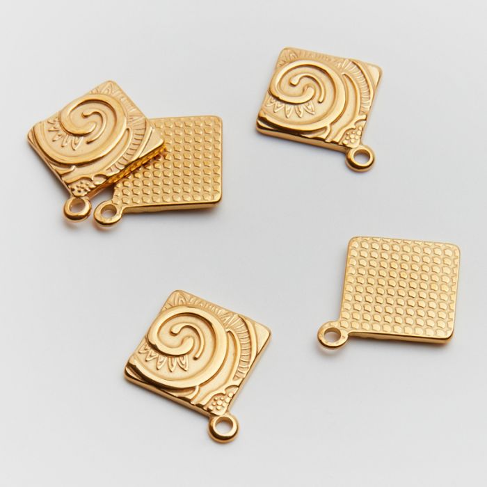 Zawieszka ze stali chirurgicznej kwadrat z zawijasem w kolorze złotym 24mm PVD