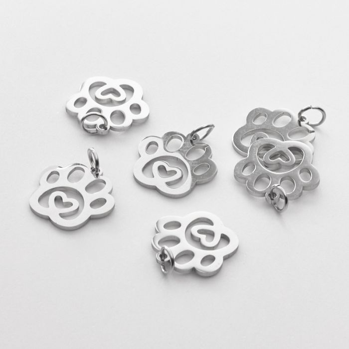 Zawieszka ze stali chirurgicznej łapka psa z serduszkiem w kolorze srebrnym 14mm