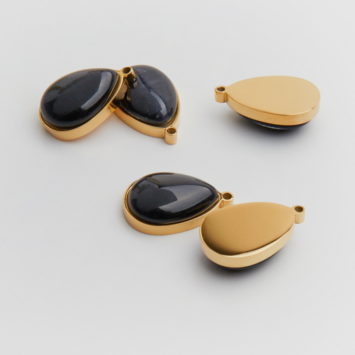 Zawieszka ze stali chirurgicznej łezka z onyksem w kolorze złotym 22mm PVDTo dopracowany produkt ze stali chirurgicznej 316L, który łączy praktyczność z estetycznym wyglądem. To materiał chętnie wybierany do biżuterii handmade ze względu na trwałość, estetykę i wygodę użytkowania. Wykończenie w kolorze złotym uzyskane metodą PVD.Zawieszka ze stali chirurgicznej 316L to dekoracyjny element, który nadaje biżuterii charakteru i pozwala tworzyć spersonalizowane projekty. Świetnie sprawdza się w naszyjnikach, bransoletkach, kolczykach oraz drobnych charmsach.Forma lub motyw