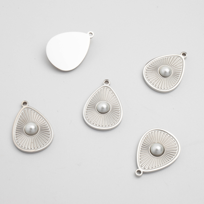 Zawieszka ze stali chirurgicznej łezka z perłą w kolorze srebrnym 18mm