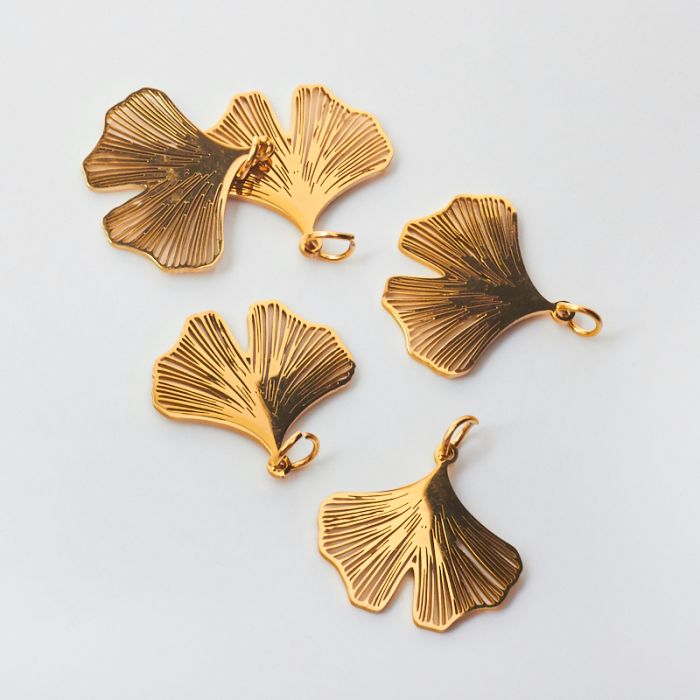 Zawieszka ze stali chirurgicznej liść miłorzębu do naszyjników w kolorze złotym 17mm