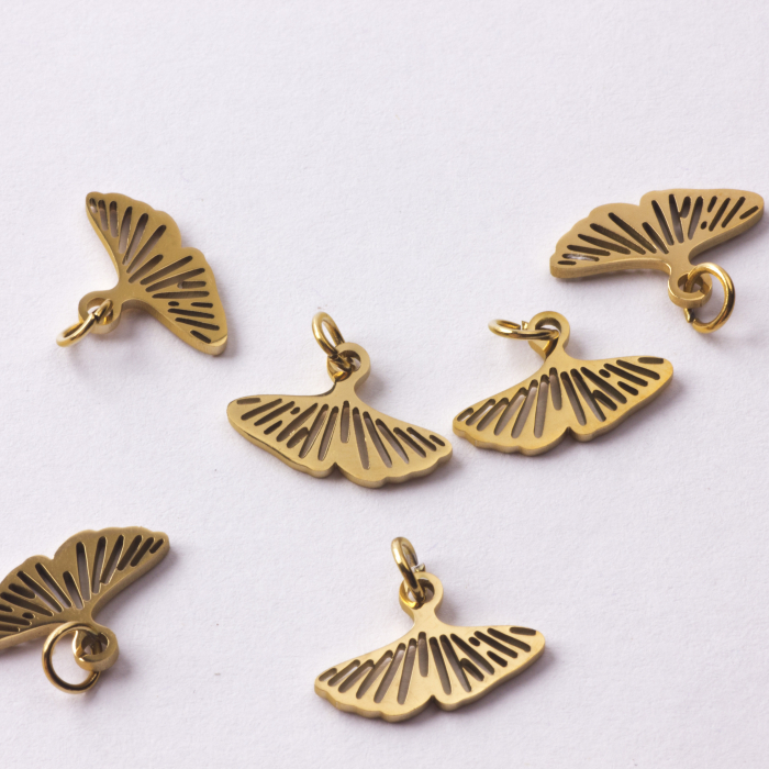 Zawieszka ze stali chirurgicznej liść miłorzębu w kolorze złotym 8mm