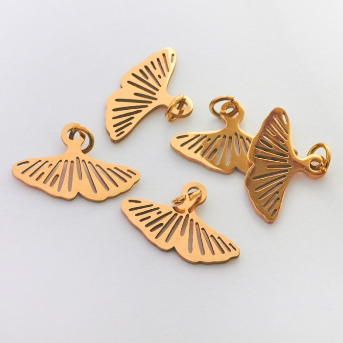 Zawieszka ze stali chirurgicznej liść miłorzębu w kolorze złotym 9mm