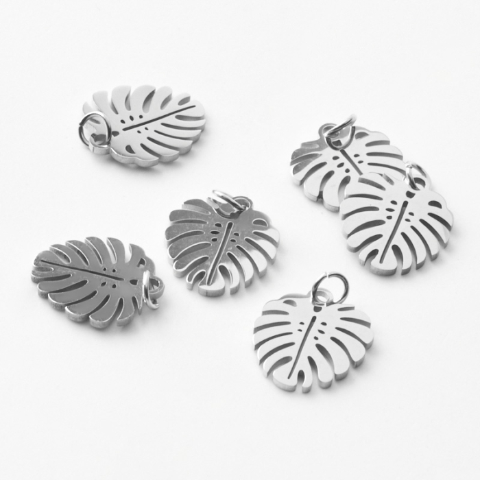Zawieszka ze stali chirurgicznej liść monstery w kolorze srebrnym 13,5mmTo trwały element biżuterii lub półfabrykat jubilerski, który dobrze sprawdza się w codziennych realizacjach. Stal chirurgiczna 316L jest ceniona za odporność na korozję i estetyczny wygląd w codziennym użytkowaniu.Zawieszka ze stali chirurgicznej 316L to dekoracyjny element, który nadaje biżuterii charakteru i pozwala tworzyć spersonalizowane projekty. Świetnie sprawdza się w naszyjnikach, bransoletkach, kolczykach oraz drobnych charmsach.Forma lub motyw