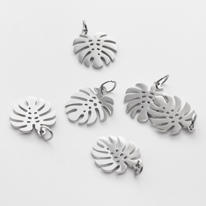 Zawieszka ze stali chirurgicznej liść monstery w kolorze srebrnym 19mm