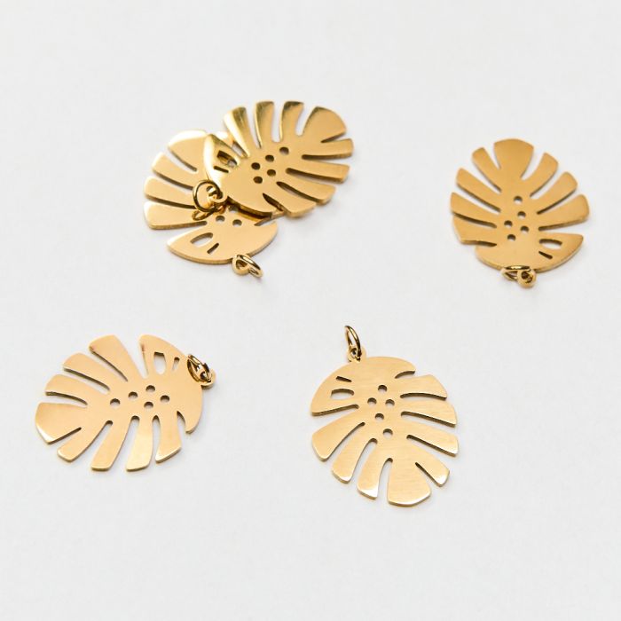 Zawieszka ze stali chirurgicznej liść monstery w kolorze złotym 21mm PVD